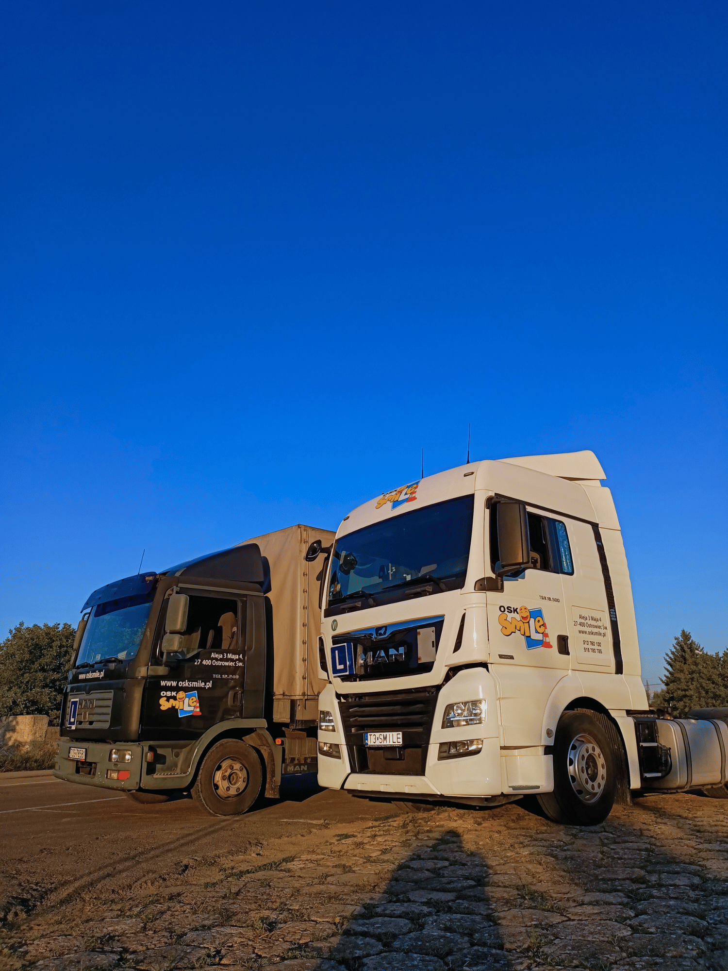 - 25 godzin zajęć praktycznych: Doskonalisz praktyczne umiejętności prowadzenia zestawu pojazdów ciężarowych z przyczepą pod okiem doświadczonych instruktorów. Nasz pojazd szkoleniowy może trafić z Tobą na egzamin praktyczny do WORD, eliminując niespodzianki na etapie praktyki.